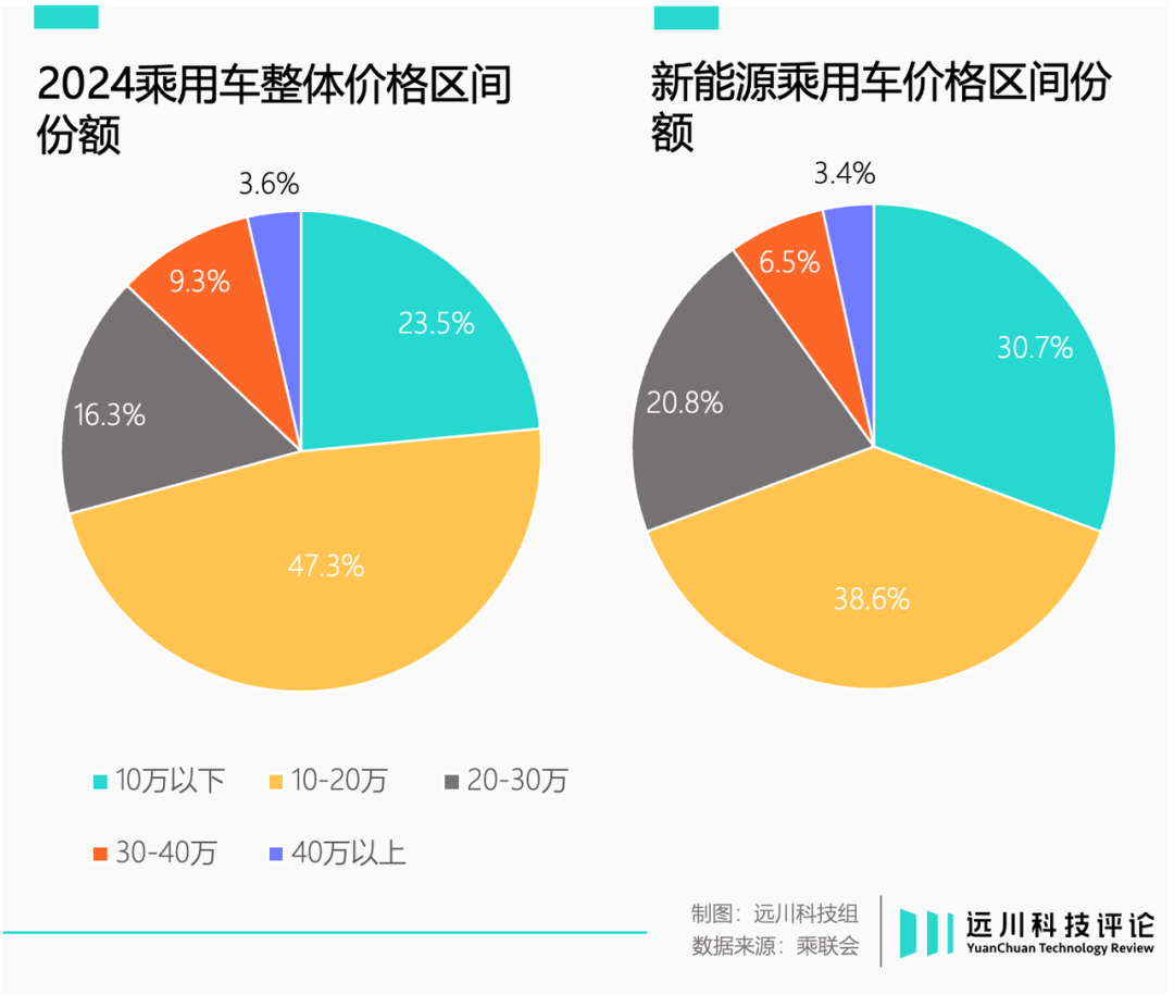 天然价钱战战火纷飞,但汽车销售均价其确凿束缚提高。2024年,20-30万的阛阓增速大幅跑赢了大盘。另一方面,比较高端纯电车型唯有蔚来一棵独苗,混动车型在高端阛阓的空间更大,也应该是比亚迪的上风规模。